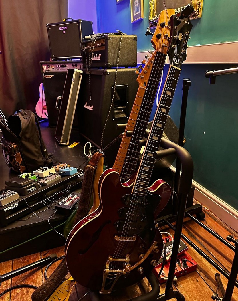 Should probably be playing the guitar, but he's probably "fixing" the amp 🤷♂️